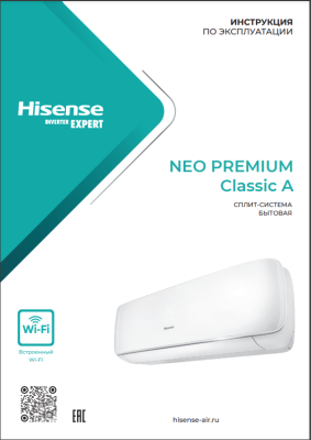 Документы и инструкция к кондиционеру Hisense NEO Premium Classic A Wi-Fi AS-10HW4SYDTG5